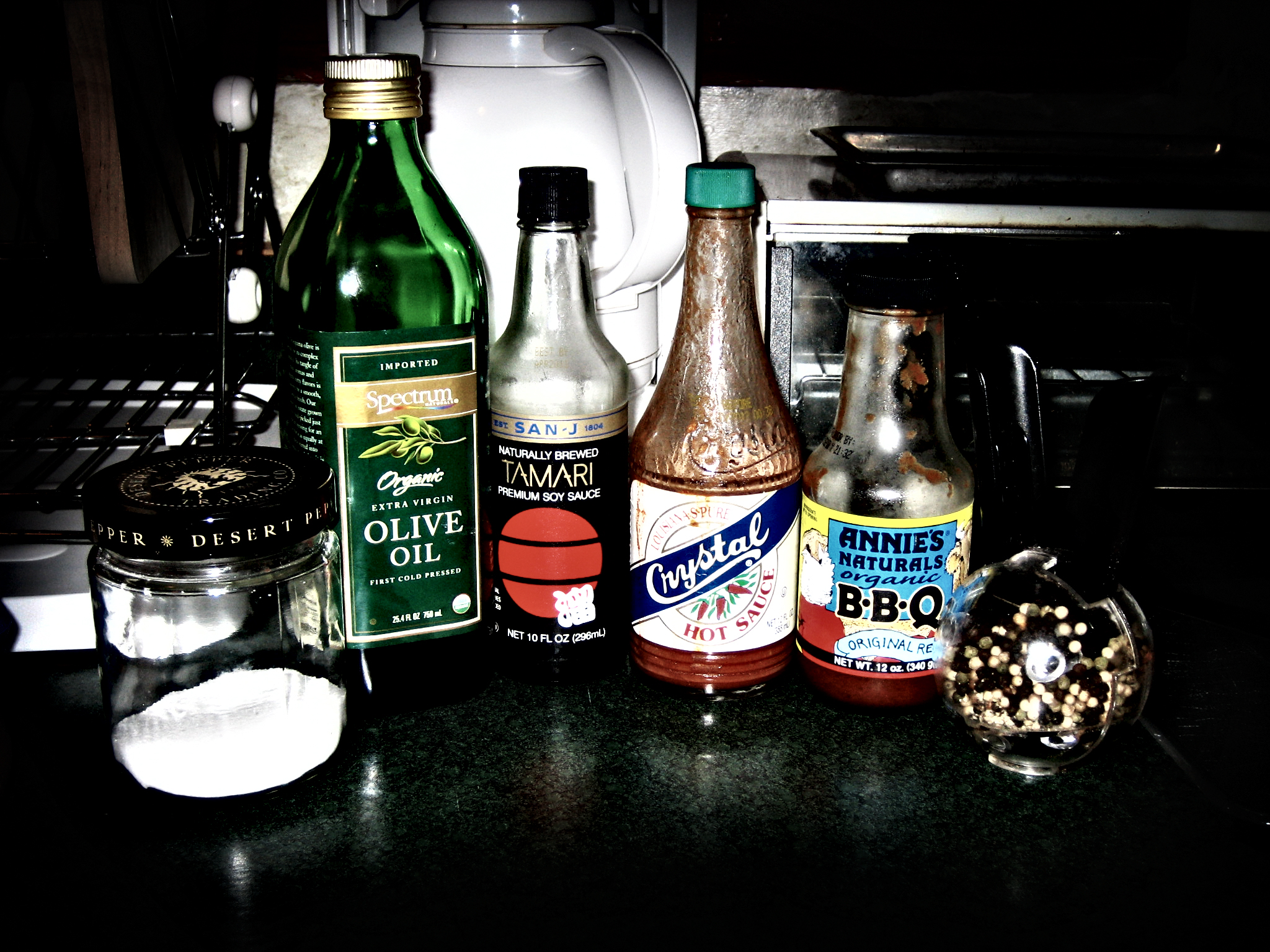 As I said, I was being lazy last night. So I made ugly food and when I took photos of it, I made no effort to make them look good. I didn’t frame well, I used a flash, it was kind of like I was trying to take bad pictures. Today, I photoshopped them . . . to make them look like lomography! (It’s one of my favorite techniques and the tutorial I base my technique on can be found here.) Be sure to click on the pictures in this post, they get bigger and they’re prettier that way.