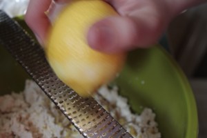First we make the tofu ricotta. Wrap the tofu in a few layers of paper towels and squeeze out the water. You don’t have to worry about getting it as dry as you would if you were going to fry it, you just don’t want watery tofu ricotta. Crumble the tofu into a medium bowl and add the lemon zest, lemon juice, garlic powder, onion powder, salt and olive oil. Stir with a fork, breaking the tofu up a bit more, until very well combined. Set this aside to marinate.