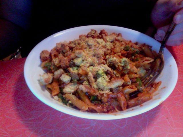 - 1/2 of a 13.5 ounce box of whole grain pene pasta (a generous 2 cups)